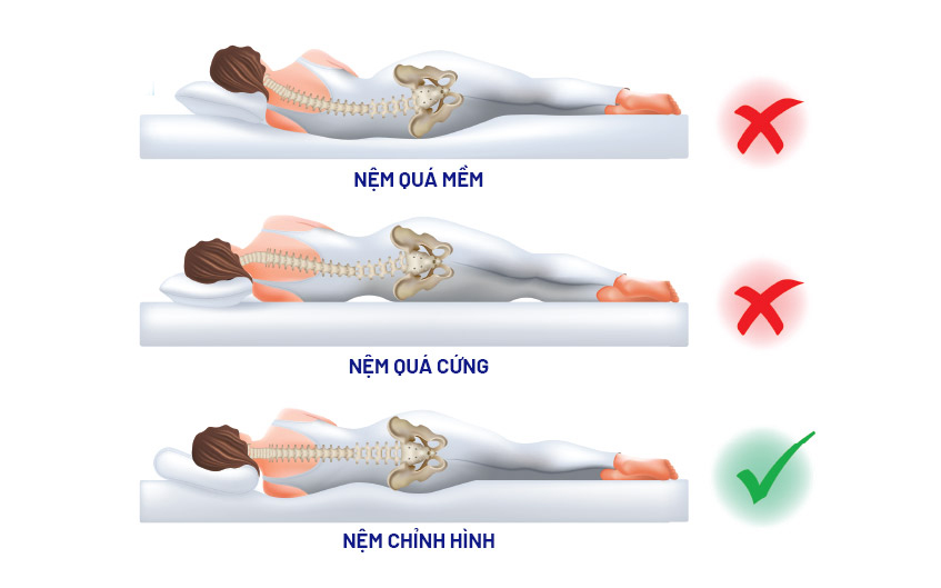 - Chọn nệm có độ đàn hồi tốt để nâng đỡ cơ thể, tránh nằm nệm quá mềm vì sẽ khiến tình trạng đau vai gáy trở nên trầm trọng hơn.