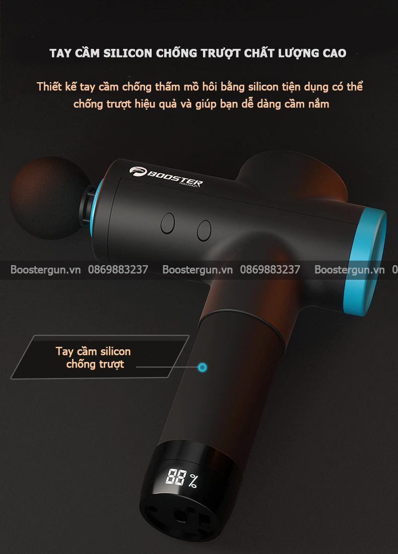 Máy massage Booster M2 còn có thiết kế rất ấn tượng tay cầm silicon chống thấm mồ hôi, trơn trượt
