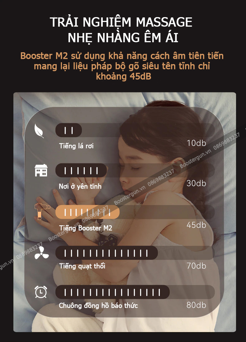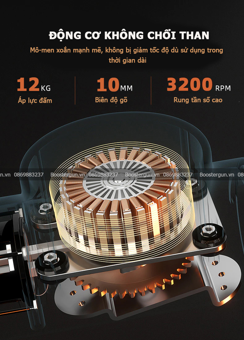 Máy massage cầm tay Booster M2 sử dụng động cơ không chổi than kết hợp cùng động cơ nổi giúp lọc triệt để rung động.
