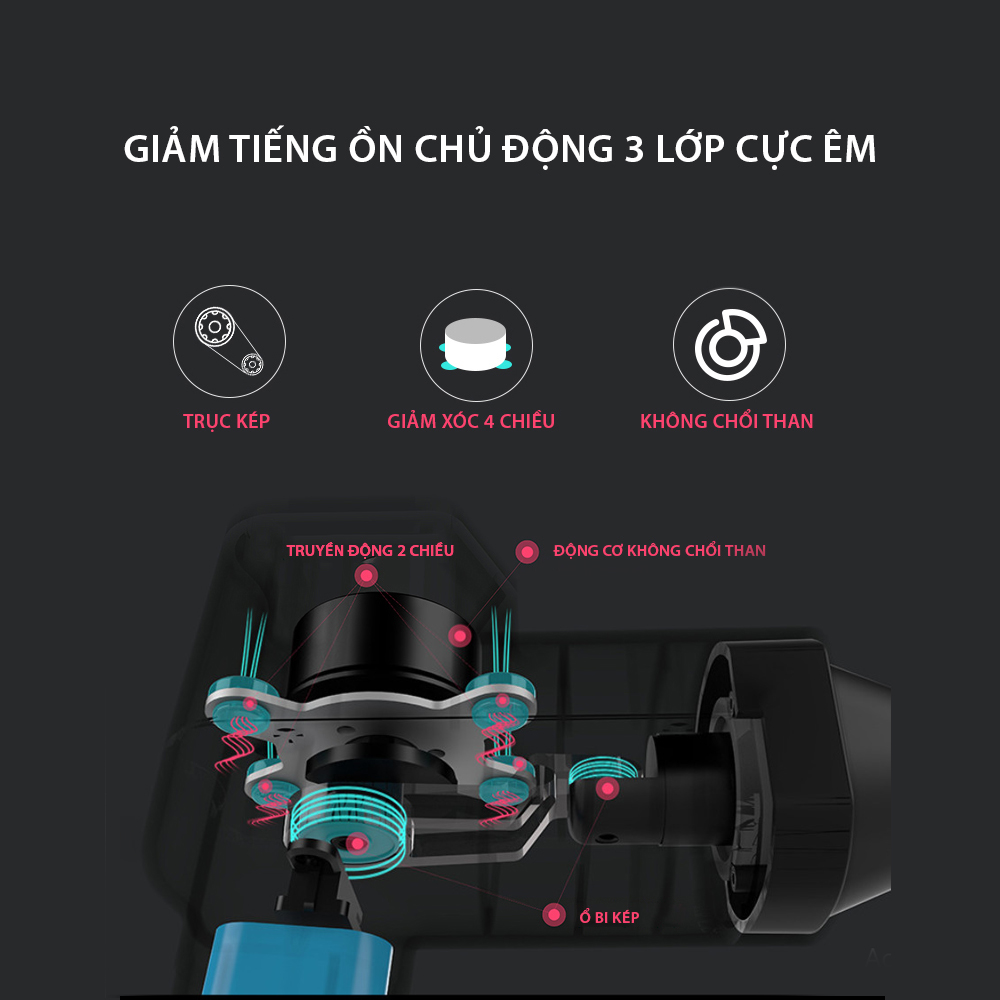 Booster T được trang bị công nghệ giảm tiếng ồn thế hệ mới, động cơ không chổi than công suất cao 24V với cấu trúc truyền động kép, lấy năng lượng mạnh, giảm thiểu tiếng ồn đạt mức 55 dB, cho phép bạn sử dụng nó theo ý muốn ở bất kì không gian nào như: trong căn hộ, phòng tập thể dục và những nơi công cộng mà không phải lo lắng ảnh hưởng đến người xung quanh.
