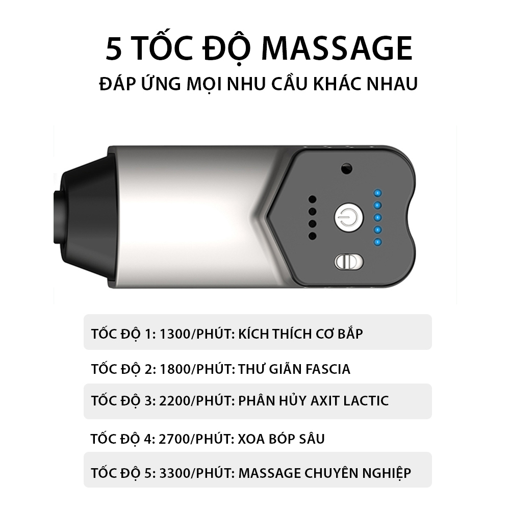 - 5 tốc độ massage tùy chỉnh theo nhu cầu sử dụng.