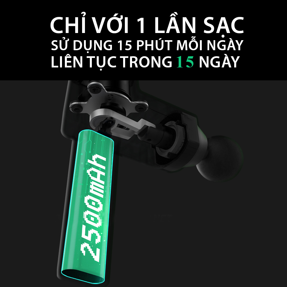 Máy massage Booster T được trang bị pin lithium chất lượng cao với dung lượng 2500mAh cho thời gian sử dụng dài.